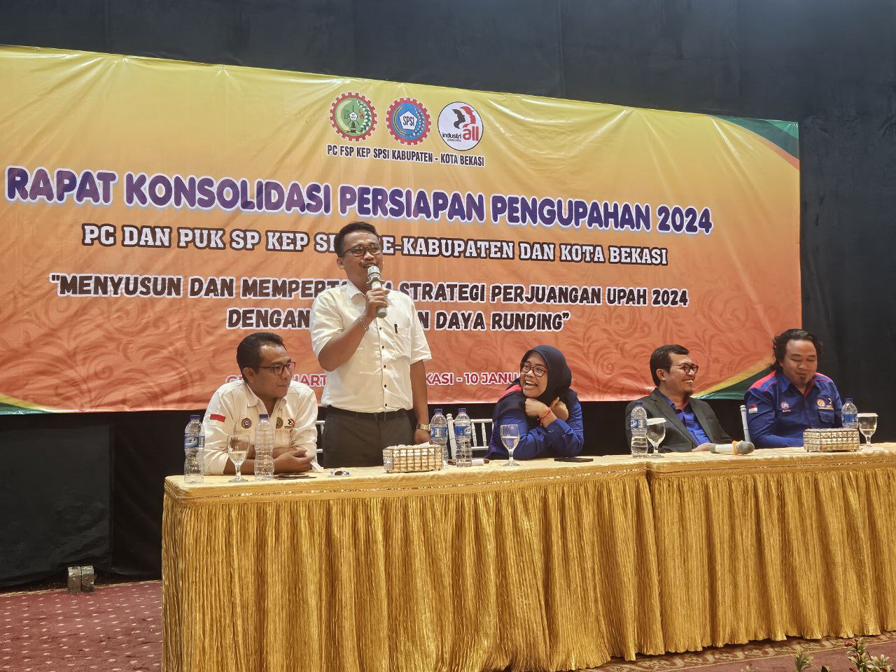 Spsibekasi.org, 10 Januari 2024 – Pimpinan Cabang Federasi Serikat Pekerja Kimia Energi dan Pertambangan (PC FSP KEP SPSI) Kabupaten-Kota Bekasi menyelenggarakan Rapat Konsolidasi bersama Pimpinan Unit Kerja SP KEP SPSI se-kabupaten dan kota. Acara ini dilaksanakan di Graha Hartika, Bekasi Selatan, Kota Bekasi, dengan agenda utama “Menyusun dan mempertajam Strategi Perjuangan Upah 2024 dengan Penguatan Daya Runding.”
