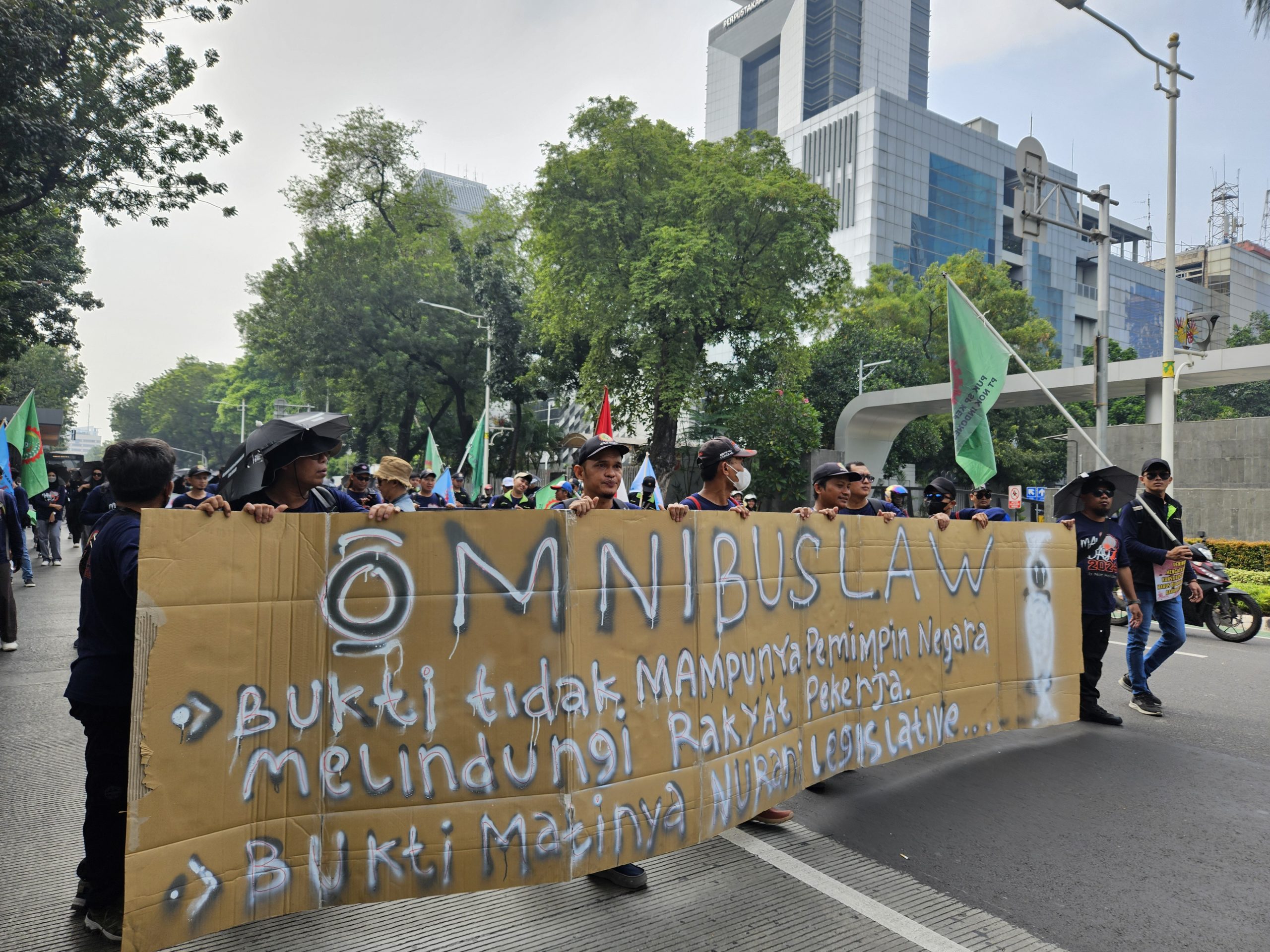 Salah satu tuntutan yang menjadi sorotan adalah pernyataan keras terhadap kebijakan Omnibus Law yang baru saja disahkan oleh pemerintah. “OMNIBUS LAW BANGSAT!!! YANG DISAHKAN PEMERINTAH HASIL MELACUR DPR RI + PENGUSAHA,” demikian tertulis salah satu media yang dipegang oleh seorang buruh. Pernyataan tersebut mencerminkan kekecewaan mendalam terhadap pemerintah yang dinilai kurang peka terhadap kebutuhan dan kepentingan pekerja di Indonesia.
