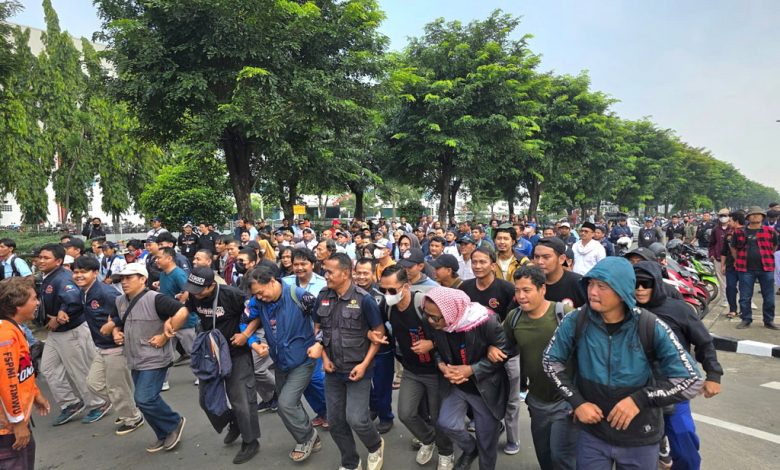 Buruh Tutup Akses Jalan Irian di MM2100, Yamaha Music Didesak Batalkan PHK
