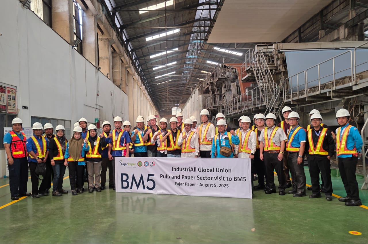 Bekasi, 5 Agustus 2025 — Sebagai bagian dari rangkaian kegiatan Regional Meeting Pulp and Paper Trade Union Network yang digelar oleh IndustriALL Global Union Asia Pasifik pada 4–7 Agustus 2025, sebanyak 40 perwakilan serikat pekerja dari tujuh negara melakukan kunjungan kerja ke PT Fajar Surya Wisesa Tbk (FSW) di Bekasi. Kunjungan ini bertujuan untuk bertukar informasi mengenai praktik baik hubungan industrial di sektor pulp and paper, serta memperkuat jejaring antarserikat pekerja di kawasan Asia Pasifik.