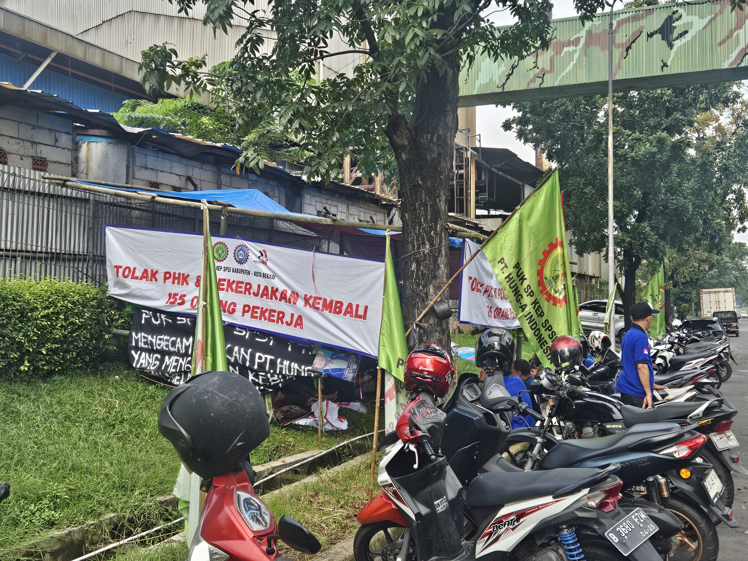 Cikarang Selatan, spsibekasi.org – Kawasan industri Hyundai di Cikarang Selatan, Kabupaten Bekasi, menjadi saksi dari perjuangan para pekerja PT Hung-A Indonesia yang menuntut hak-hak mereka setelah perusahaan mengumumkan penutupan operasional dan pemutusan hubungan kerja (PHK). Pada 1 Februari 2024, PT Hung-A Indonesia mengumumkan PHK kepada 1.058 orang pekerja. Namun, pada 1 April 2024, jumlah pekerja yang terkena PHK meningkat menjadi 1.150 orang, tanpa adanya penolakan.