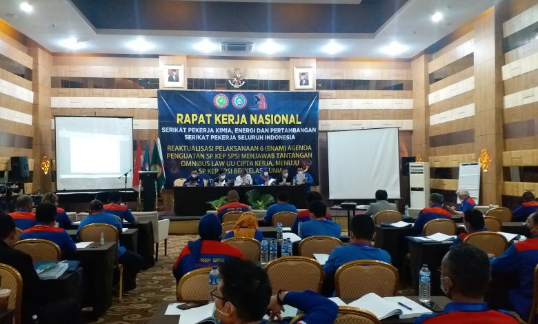 Rapat Kerja Nasional SP KEP SPSI Tahun 2021 dengan mengusung tema Reaktualisasi pelaksanaan 6 (enam) agenda penguatan SP KEP SPSI menjawab tantangan Omnibus law/Cipta kerja, menuju SP KEP SPSI berkelas dunia yang dihadiri utusan dari seluruh Indonesia diselenggarakan di Hotel Grand Tjokro – Jakarta barat.
