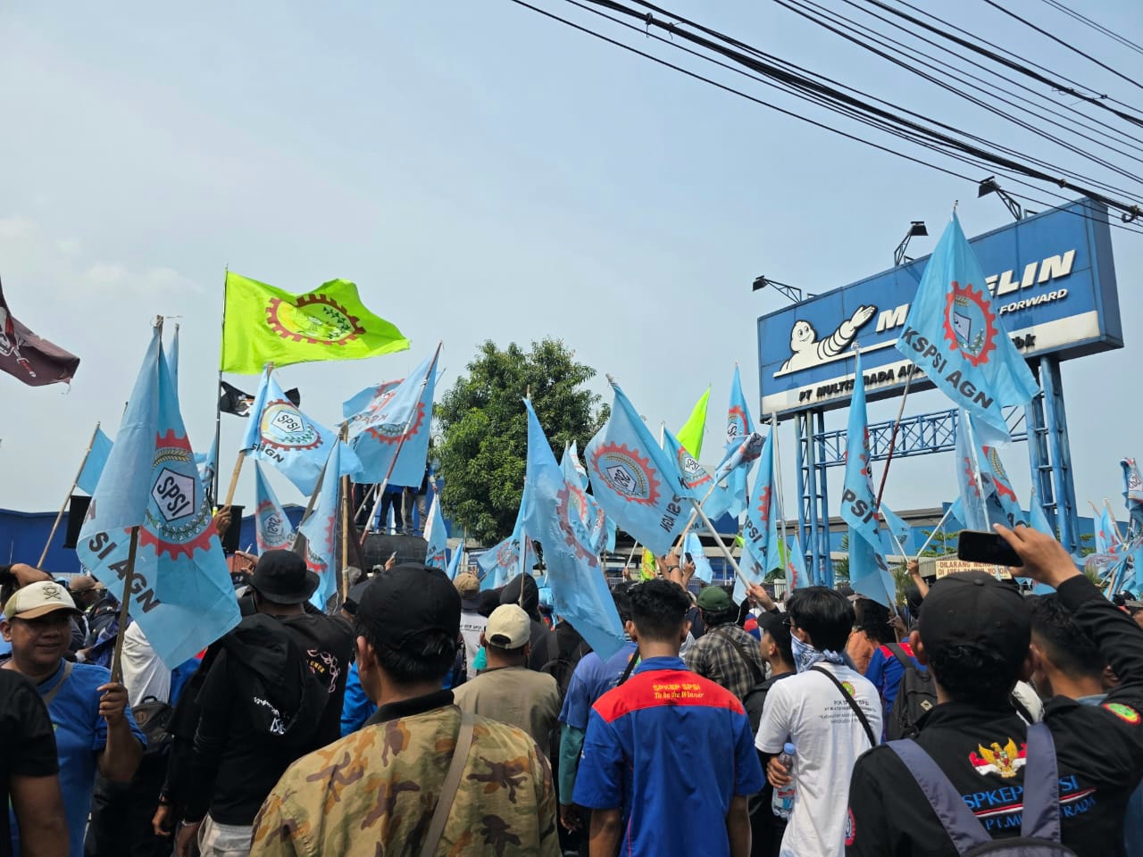 Sejak pukul 09.00 WIB, ribuan buruh mulai memadati jalur Pantura Karawang-Bekasi, membuat lalu lintas macet total sepanjang hampir 3 kilometer. Aksi besar-besaran yang digelar hari ini (03/11) di depan gerbang perusahaan dihadiri elemen buruh dari Bekasi, Purwakarta, Karawang, hingga Garut, serta didukung berbagai federasi dan aliansi termasuk BBM (Buruh Bekasi Melawan) dan Aliansi Perak (Pekerja dan Rakyat).