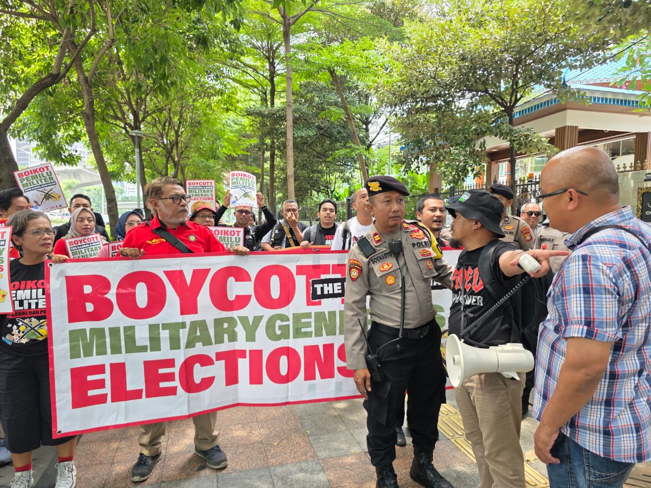 Koordinator aksi, Khamid Istakhori, menegaskan bahwa tragedi kemanusiaan di Myanmar sudah berada pada tahap yang sangat mengkhawatirkan. “Ini bukan tentang Myanmar, ini tentang kemanusiaan. Mereka dibunuh, diperkosa, dipaksa hidup di bawah tanah. Kita datang berdialog dengan baik. Para pekerja hotel adalah buruh seperti kita; mereka tidak berhak melarang aksi damai ini,” ujarnya.