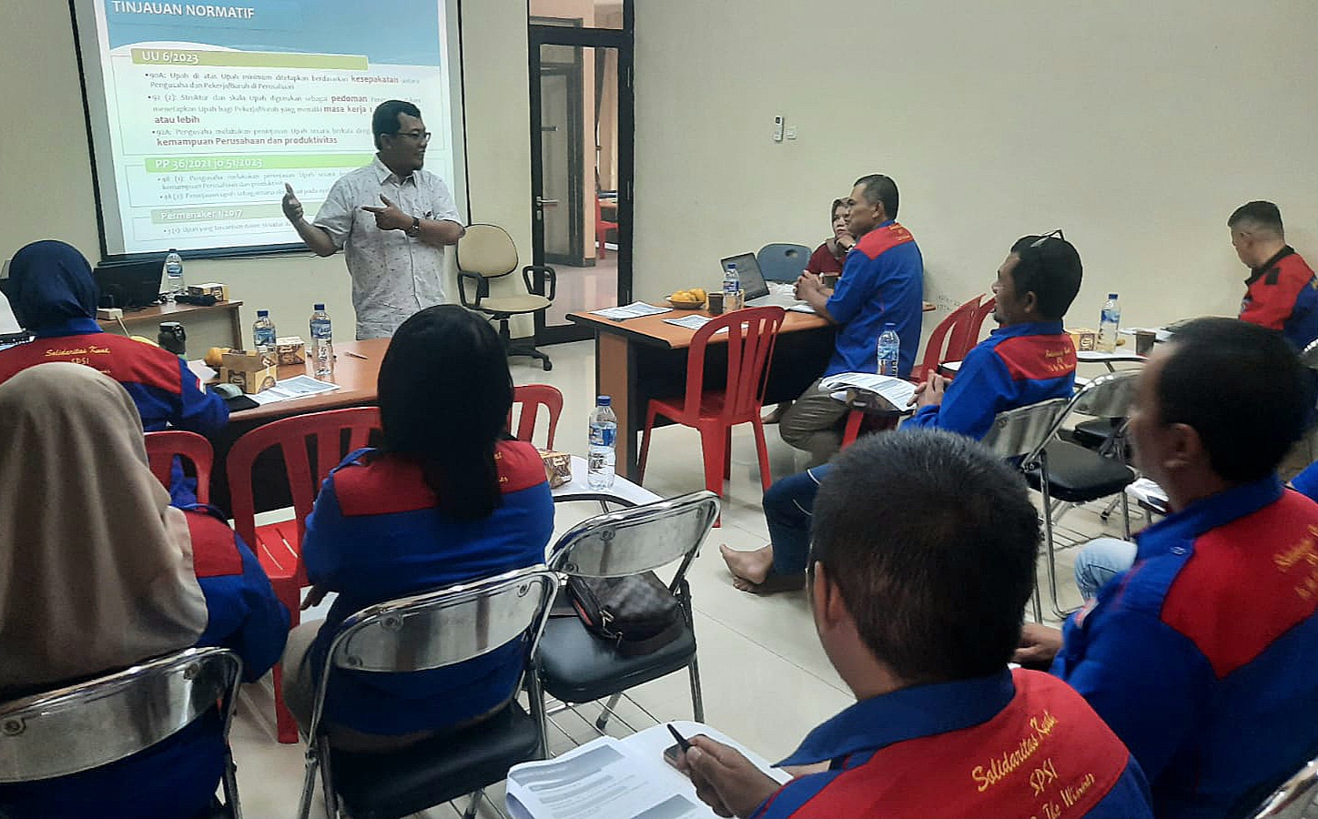 Pembekalan menghadirkan narasumber Zen Mutowali, SH, CLA, dari Divisi PKB PP FSP KEP SPSI, yang memberikan materi terkait konsep, regulasi, serta strategi penyusunan sistem pengupahan yang berkeadilan dan berkelanjutan.