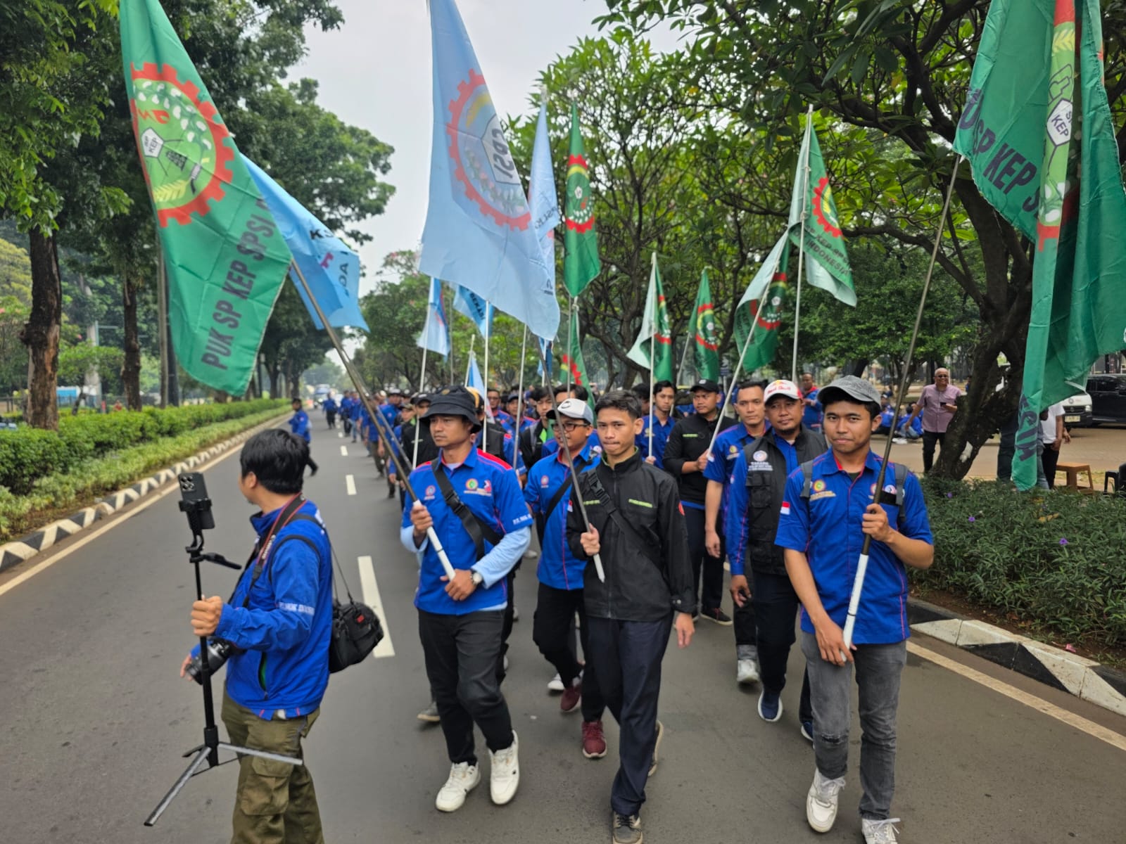 Jakarta, spsibekasi.org — Ribuan buruh yang tergabung dalam Konfederasi Serikat Pekerja Seluruh Indonesia (KSPSI) di bawah kepemimpinan Andi Gani Nena Wea sejak pukul 08.00 WIB mulai bergerak dari daerah masing-masing menuju Jakarta, Rabu (3/12/2025). Kehadiran mereka ditujukan untuk mengikuti acara pembukaan Rapat Pimpinan Nasional (RAPIMNAS) KSPSI yang digelar di Istora Senayan, Jakarta.