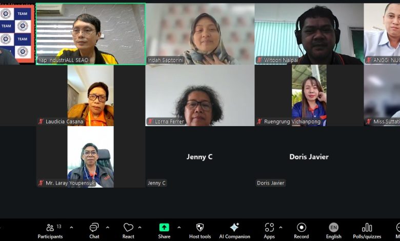 Bekasi, spsibekasi – IndustrIALL Southeast Asia and Oceania (SEAO) menyelenggarakan IndustrIALL Regional OSH Committee Coordination Meeting secara daring pada Rabu, 28 Januari 2026. Pertemuan ini mengangkat tema “Pelaporan Perkembangan Kondisi K3 di Setiap Negara Regional SEAO” dan diikuti oleh 17 peserta dari 8 negara di kawasan Asia Tenggara dan Oseania.