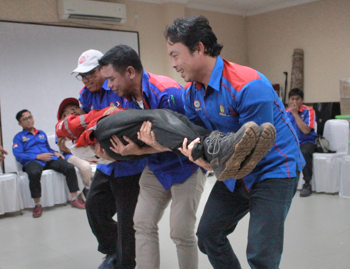 Peserta juga dibekali berbagai teknik praktis pemindahan korban seperti teknik tarikan bahu, tarikan selimut, menggendong, memapah, hingga teknik pemindahan menggunakan tandu dan alat bantu evakuasi lainnya. Selain itu, disampaikan pula pentingnya penempatan posisi korban sesuai kondisi medis, termasuk teknik log roll untuk menjaga stabilitas tulang belakang pada korban yang dicurigai mengalami trauma spinal.